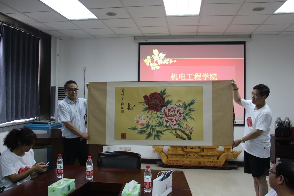 机械832班毕业生,江苏瑞明创业投资管理有限公司董事长郭顺根校友向母校捐赠了一幅“万紫千红”云锦织金,感恩母校的培养。