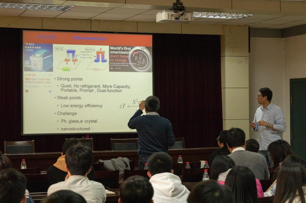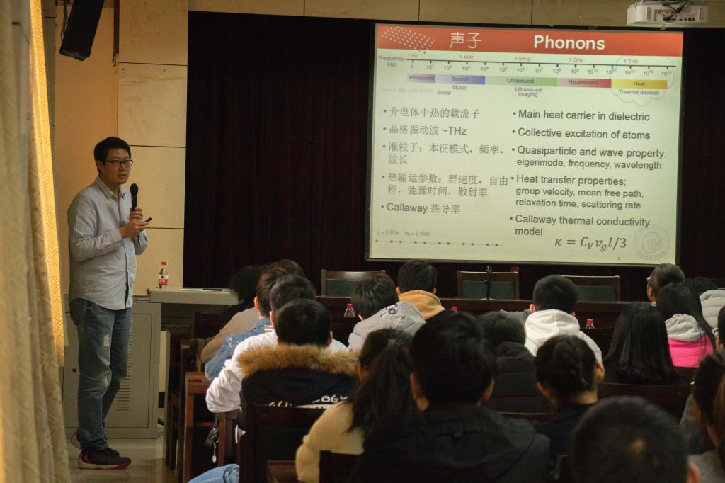 杨诺教授长期致力于纳米尺度能量转换和利用的热传导研究。报告会上,杨教授围绕“纳米尺度热能输运与转换”的主题,分四个部分:热导率调控、热输运、热能利用和热电转换,为与会师生介绍了他领衔的纳米传热实验室最新的科研成果。