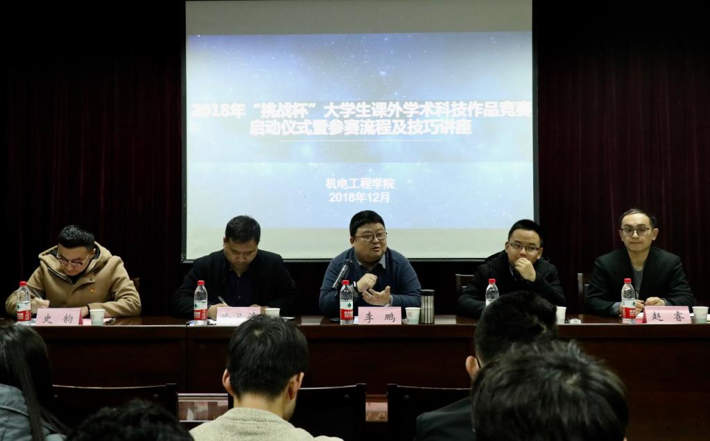 2018年12月26日晚19:00,“挑战杯”启动仪式暨参赛流程及技巧讲座在实验楼2B304举行。校团委书记李鹏、88858cc永利官网院长助理,学生工作负责人祁怀远、88858cc永利官网创新创业指导老师赵睿出席本次启动仪式。学院研究生代表,参赛队伍代表,2016、2017、2018级全学委,科创部全体成员参加了启动仪式。本次大会由院团委书记史韵老师主持。