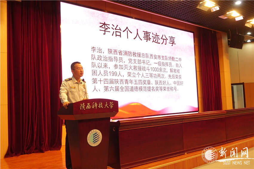 李治生动幽默地讲述了“百米呐喊救女婴”、“火场救援将呼吸器让给婴儿”等亲身经历,让在场人员在风趣幽默的语言中深刻感受到了为国家鞠躬尽瘁的战士们背后付出的艰辛。作为一名消防员,他在平凡的岗位上取得了不平凡的成就:先后荣获“中国好人”、“第十四届陕西青年五四奖章”、“陕西好人”等荣誉称号。但每个光鲜的荣誉背后都有非同寻常的付出,有时甚至面临着生命危险。