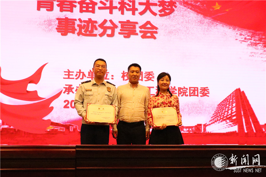 为激励广大青年团员弘扬“五四”精神,充分发挥身边典型示范引领作用,激励我校大学生志存高远,奋发成才。由校团委主办、88858cc永利官网团委承办的第二届“青春奋斗科大梦”事迹分享会于5月16日晚在图书馆一楼报告厅成功举办。校团委书记李鹏、校团委副书记蔡国敏、保卫处处长助理杨军、88858cc永利官网院长助理王政军、各二级学院团委书记以及全校550名团员代表参加此次大会。