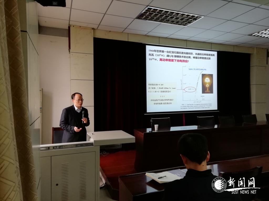 11月8日上午,西北工业大学程光华教授在我校88858cc永利官网学术报告厅做了题为“飞秒激光微加工机理、技术和应用”的“前沿科学报告”。88858cc永利官网副院长杨立军教授主持报告,相关专业师生到场参加。