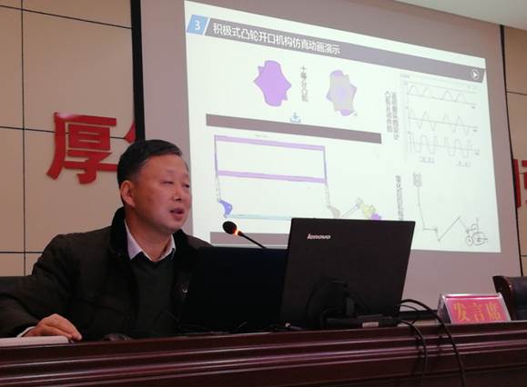 在30日下午的包装机械和五金机电项目推介会上,88858cc永利官网院长葛正浩教授作了题为《包装机械中凸轮及凸轮连杆机构》的报告。报告深入浅出,通过在合作中的大量案例,结合精心准备的动画,形象地展示了凸轮及凸轮连杆机构在包装机械上的典型应用,如烟包裹包成型及推烟机构、食品包装机械、分拣机械手、织机积极式开口机构等。