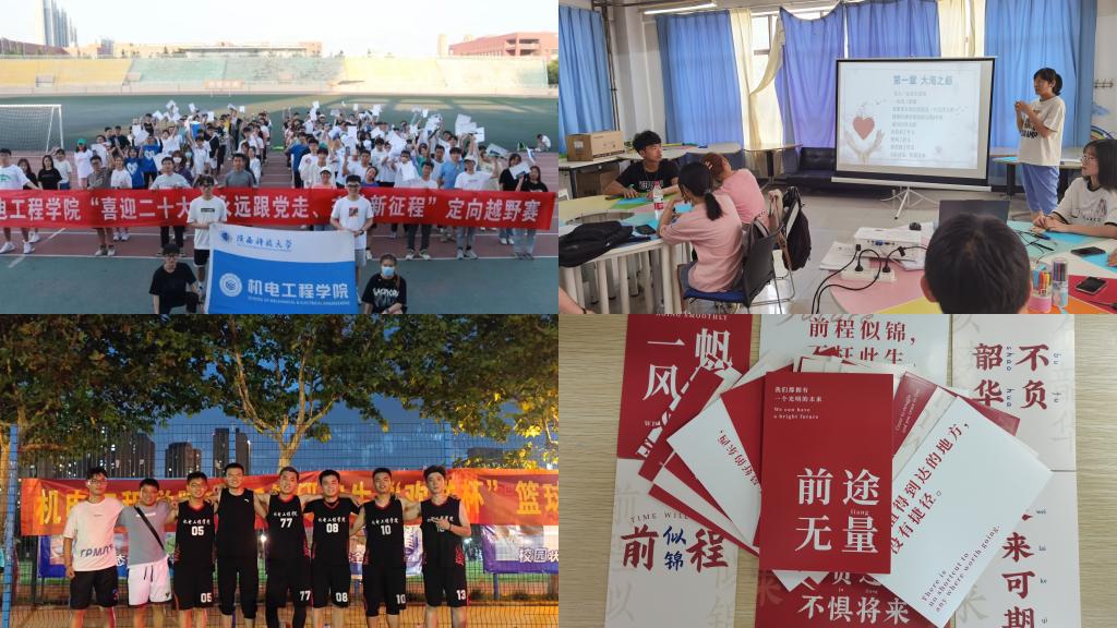 摸索新办法,让主题活动“潮”起来。为引导青年学生信念更加坚定、精神更加饱满、身心更加健康,学院组织系列“喜迎二十大 永远跟党走 奋进新征程”活动。学院团委组织开展定向越野赛,通过“巧渡金沙江”“百团大战”等趣味比赛,引导学生学习党团知识,感悟红色精神。“积淀”网络文化中心积极组织学生参加校级赛事,3件作品获奖,学院获得优秀组织奖,在全院营造了“争做好网民 弘扬正能量”的良好氛围。学院心理工作站通过线上线下的方式开展心理读书会、心理委员微课大赛和宿舍长培训等活动,增强学生心理自助能力,提升学生心理健康水平,努力促进学生心理健康和综合素质的全面提高。针对毕业生,通过党支部集体过政治生日和联谊比赛等多种形式的活动,引导毕业生展现青春风采,发挥榜样作用,爱校荣校,砥砺奋进。