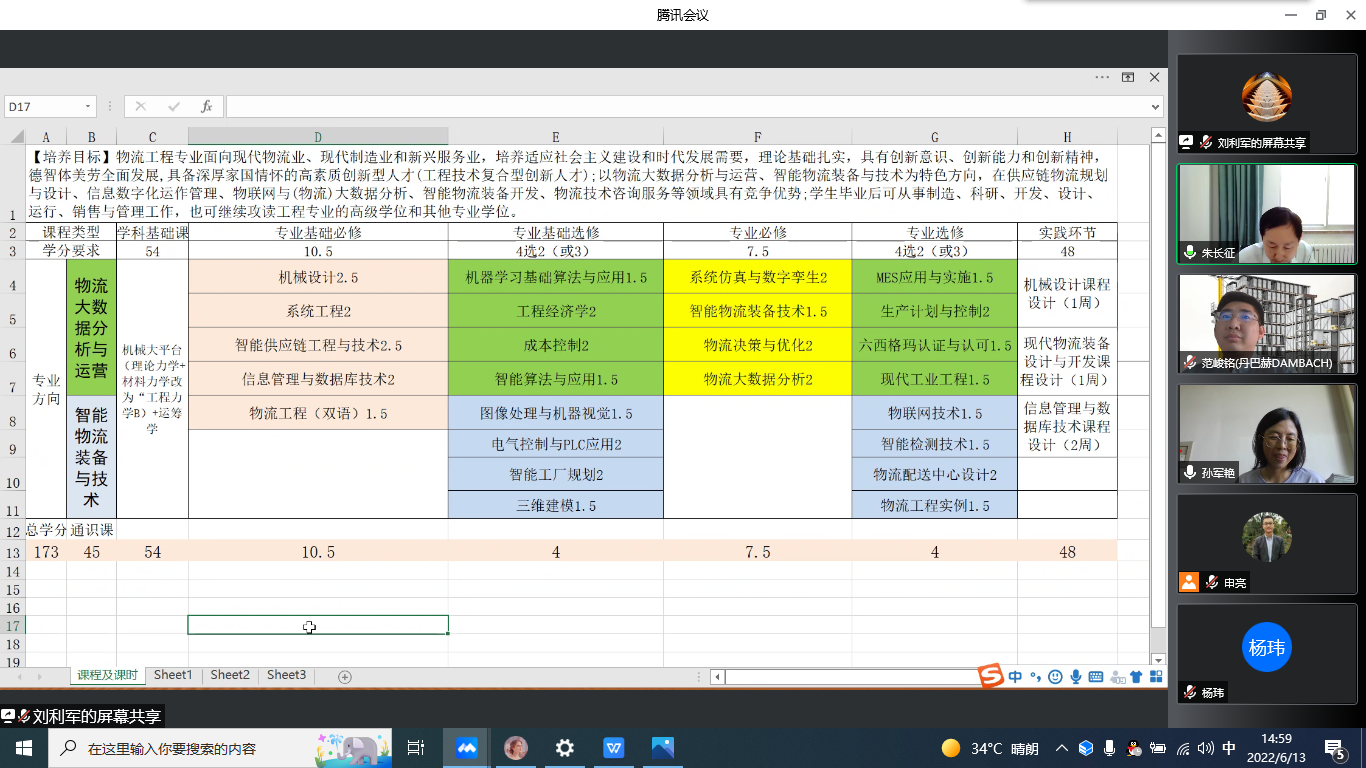 6月13日下午两点半,88858cc永利官网物流工程专业培养方案修订研讨会在线上顺利举行。西安邮电大学物流学院副院长朱长征教授、德国丹巴赫中国区总监范峻铭到会指导。88858cc永利官网教学副院长袁越锦教授及物流工程系全体教师参加研讨,会议由系主任孙军艳老师主持。