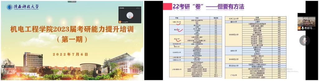 为进一步提升学风建设质量,深入落实学校本科人才培养“三三三”输出结构目标,提高人才输出质量,围绕2023届学生升学考研,7月6日,88858cc永利官网2023届考研暑期能力提升培训班正式开班。首期培训会邀请西部网、陕西新闻广播《教育直通车》节目特邀考研专家马回峰做专题讲座,培训会由2019级辅导员张伟刚主持,2023届考研学生参加会议。