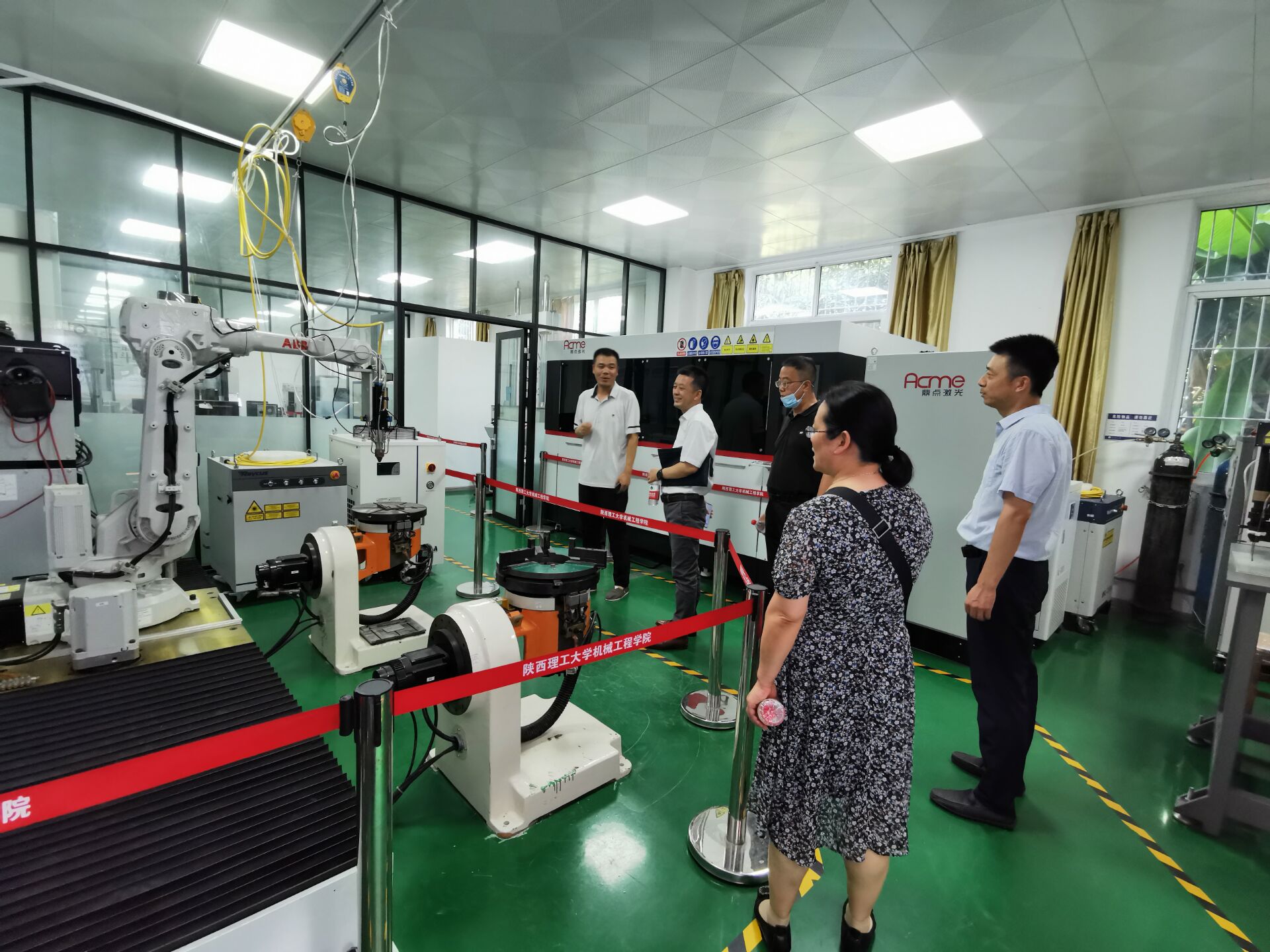 在陕西理工大学交流期间,杨立军一行参观了学院主要科研平台及实验室,详细了解了学院在智能制造及科研平台建设方面的情况。在其后的座谈会上,陕西理工大学机械工程学院院长白海洋介绍了学校学科建设、科学研究、人才培养、产学融合等方面的经验,并分享了学院发展取得的成绩。杨立军介绍了陕西科技大学“四新”学科建设布局情况及88858cc永利官网取得的主要成绩。双方人员在学科建设、科学研究、人才培养、绩效考核等方面工作进行了深入探讨交流。会后,双方表示要进一步加强两院沟通交流,互帮互助,实现资源整合共享,在协同服务汉中市先进制造业领域双方应加强合作,结成友好学院,共同发展。