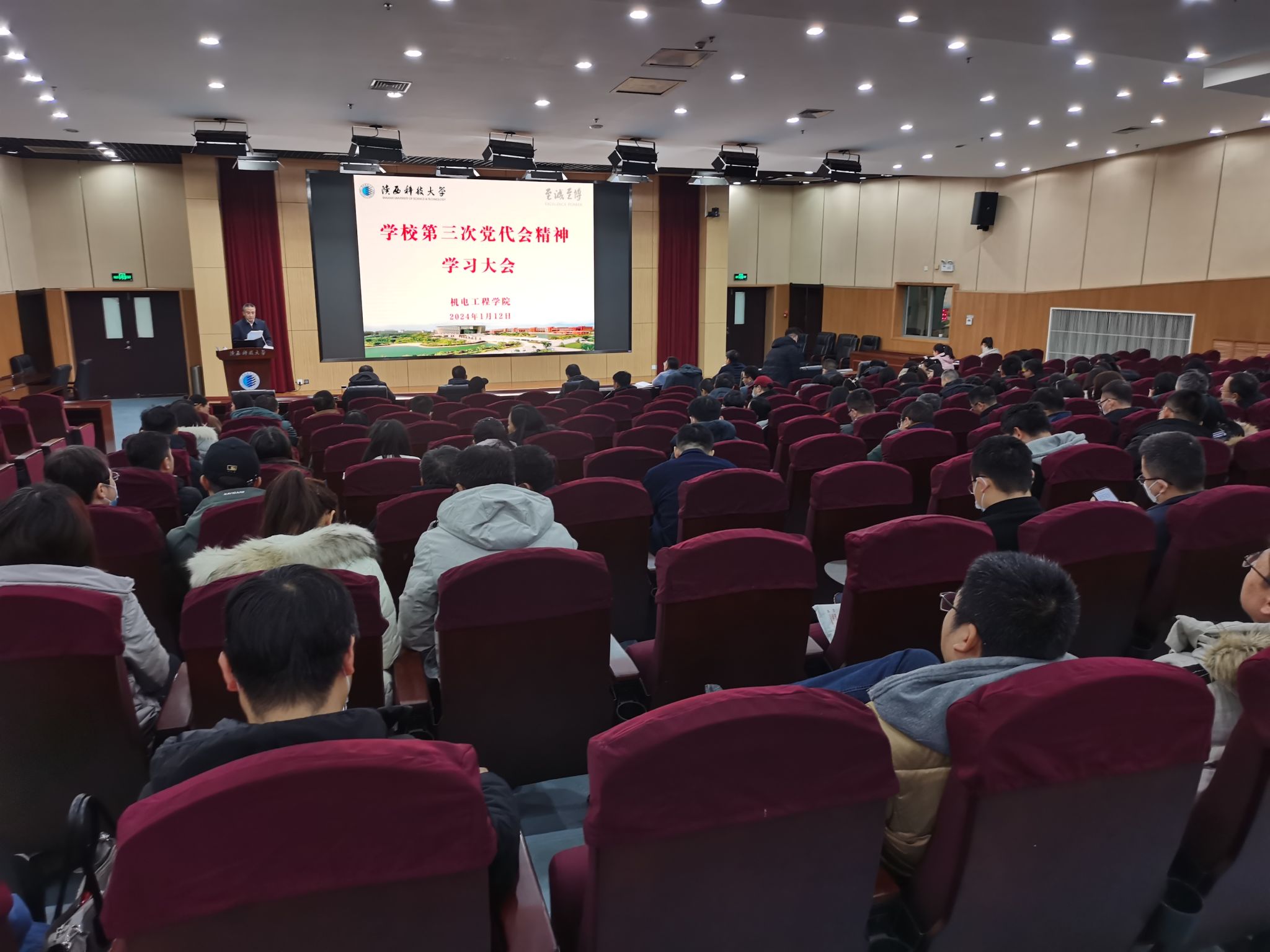 1月12日,88858cc永利官网在图书馆学术报告厅召开专题会议学习传达学校第三次党代会精神。会议由学院党委书记夏祥林主持,全体教职工参会。