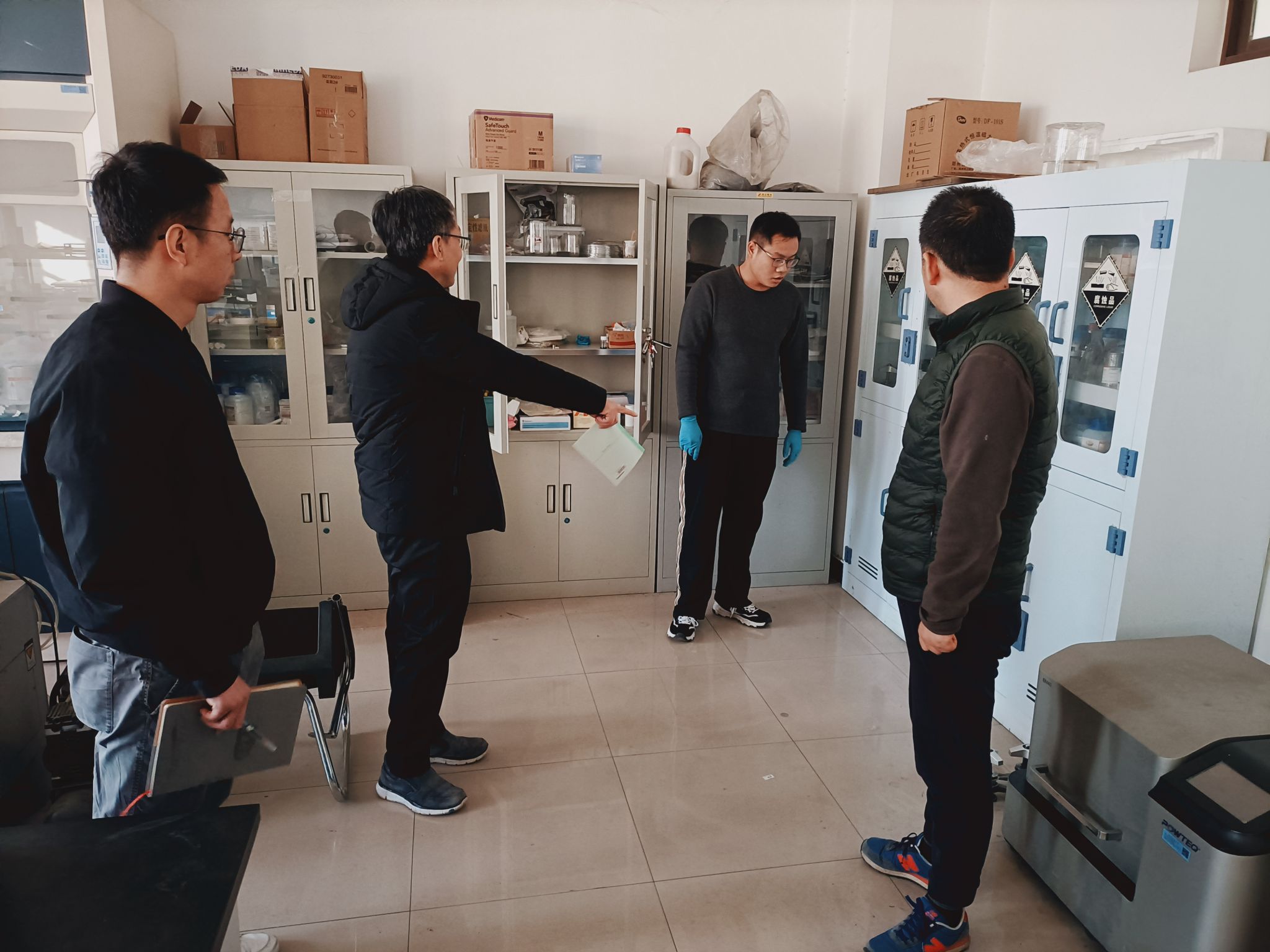安全检查过程中,还对研究生出勤情况做了详细考核,与留校研究的导师、学生进行了交流,并对学生进行了安全教育,要求寒假期间,导师要做好留校学生的科研项目风险评估,提醒实验操作注意事项,加强实验安全管理。