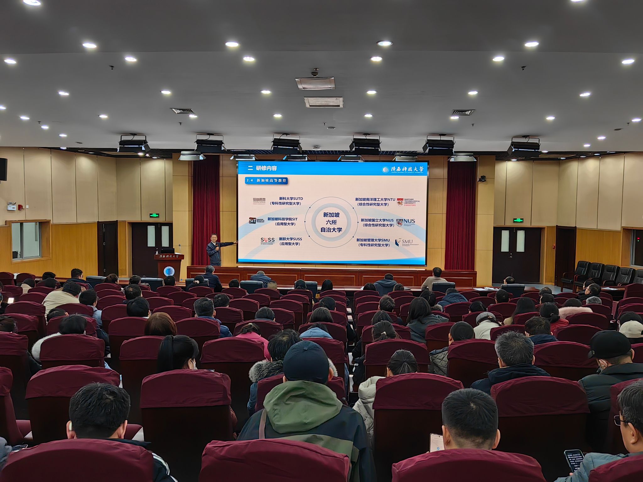 为借鉴学习国外先进教育理念,以学赋能,以学促建,切实推动学院人才培养质量提质增效,1月18日,88858cc永利官网举办陕西省高等教育行政管理干部赴新加坡研修项目汇报交流会。学院院长杨立军作为本次研修团29名成员之一,围绕新加坡高等教育体系、教学改革、教师队伍建设、国际交流、国家治理等多个方面为全院教职工汇报了研修培训期间的收获与思考。