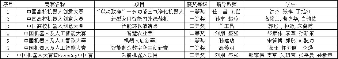 在中国高校智能机器人创意大赛中,全省仅五支队伍获全国一等奖,其中,我校智能制造与机器人工程学院任工昌教授指导的《“以动致静”—多功能空气净化机器人》和设计与艺术学院孙宁老师指导的《新型家用智能内外洗鞋机》双双获得全国一等奖。在中国机器人及人工智能大赛中,我校参赛队伍在机器人创新赛、智能制造数字孪生赛和智慧农业赛三个赛道均获得全国二等奖。在中国机器人大赛暨RoboCup中国赛中,我校代表队首次参赛并获全国三等奖1项。