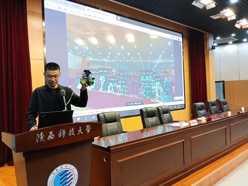 研讨会后,机器人工程专业认知实习的学生在企业导师的指导下,体验了地平线公司全新推出的旭日x3派控制板,经过一天的学习、认知和实践,同学们亲身感受到人工智能、机器人时代带给我们的技术变革,也坚定了科技报国的决心。