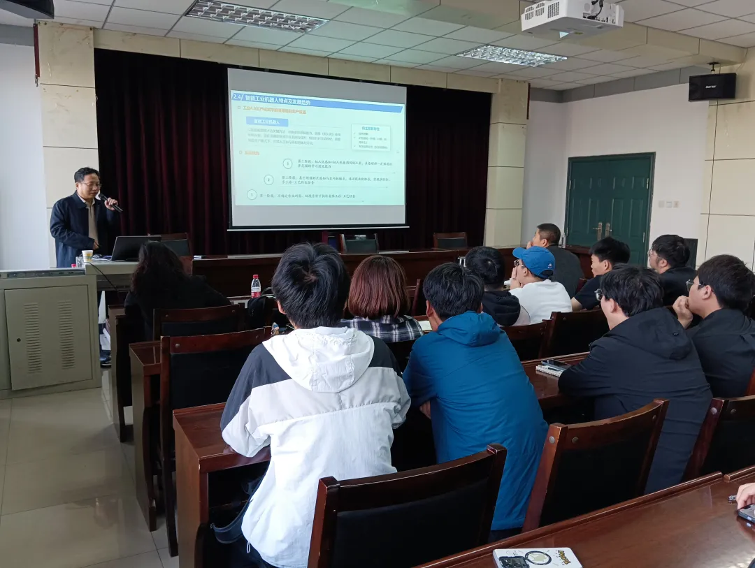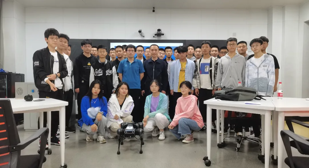 【29】2023年10月30日,我院特聘教授,西安中科光电董事长吴易明教授专程来陕西科技大学,为同学们做了《面向工业4.0具身智能机器人技术及应用》的学术报告,作为《机器人工程导论》课程的最后一课,开创了校外特聘教授、企业家为机器人工程专业学生授课的先河。