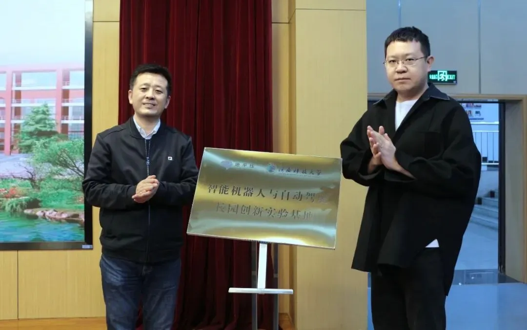 【20】2023年3月21日,北京地平线机器人事业部总经理王丛、生态负责人胡春旭、交付负责人程飞、开发者生态运营负责人高吟佳、生态经理姜瑞滢等一行五人做客我校“教育教学论坛”,陕西科技大学与地平线联合挂牌成立“智能机器人与自动驾驶校园创新实验基地”,学院聘请王丛先生为机器人工程专业特聘教育顾问兼企业导师,聘请程飞先生为机器人工程专业特聘企业导师。机器人工程正式与地平线建立官方校企合作关系。
