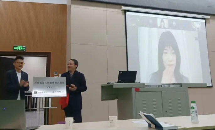 【21】2023年3月23日,应智能制造与机器人工程学院机器人工程专业邀请,北京勤牛创智科技有限公司总经理贾敏博士、联合创始人高鹏做客我校“教育教学论坛”,贾敏博士在美国线上做了题为《桌面机器人与工业4.0——高等教育创新研究》的报告,高鹏在线下为同学们做了创新创业方面的讲座,陕西科技大学与开塔机器人联合挂牌成立“开塔机器人联合研发实验室”,机器人工程正式与开塔机器人建立官方校企合作关系。