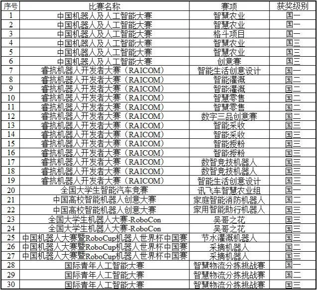 【39】2023年全年,我校师生在2023全国大学生机器人大赛、第二十五届中国机器人及人工智能大赛、2023睿抗机器人开发者大赛、第十八届全国大学生智能汽车竞赛、第六届中国高校机器人创意大赛和2023中国机器人大赛暨RoboCup机器人世界杯中国赛、第五届国际青年人工智能大赛等各项机器人大赛中再创佳绩,累计获全国一等奖6项、二等奖8项、三等奖16项,省级奖项65项。