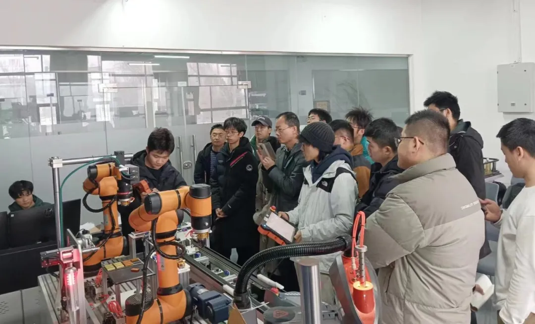 【34】2023年12月29至31日,由智能制造与机器人工程学院和苏州博达特机电科技有限公司联合举办的GF智能机器人产线培训在GF智能制造实训基地举行,我院机电教研室、工业物流教研室、机器人工程教研室等部门教师,机器人工程等相关专业学生及相关研究领域研究生近70人次参与了培训。随着GF机器人产线基地的落成,机器人工程专业学生拥有了最先进的机器人实验装备。