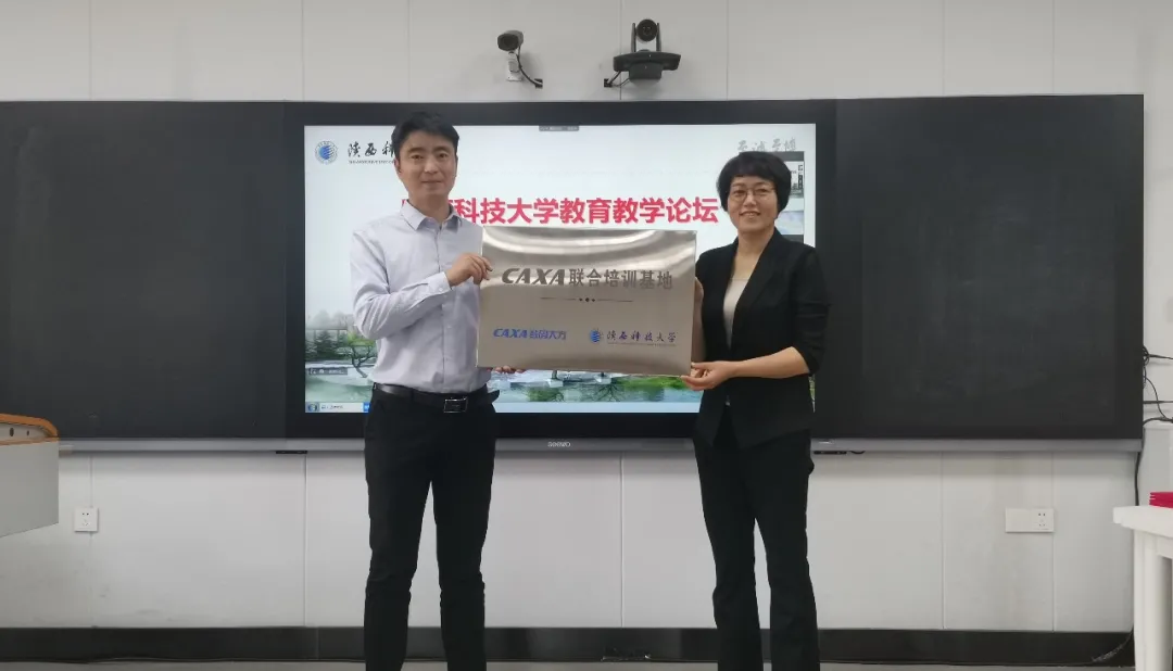 【17】2022年5月20日上午,陕西科技大学教育教学论坛,挂牌成立《陕西科技大学CAXA联合培训基地》,并聘请北京数码大方科技股份有限公司西北事业部总经理王艳女士和副总经理冯伟先生为机器人工程专业企业特聘导师。机器人工程正式与CAXA建立官方校企合作关系。