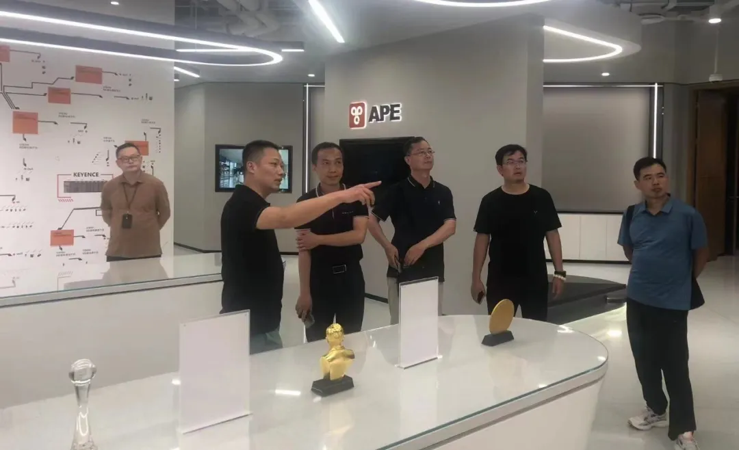 【26】2023年7月15日下午,机器人工程专业刘庆立、张强两位老师受邀赴江苏杰士德精密工业有限公司(以下简称“杰士德”)参观调研。杰士德集团旗下全资子公司昆山艾派科技副总经理王浩,苏州博达特机电有限公司总经理浦恩帅等一同参观了艾派APE机器人产线,双方就校企合作、机器人相关人才培养等议题进行了深入探讨和交流。