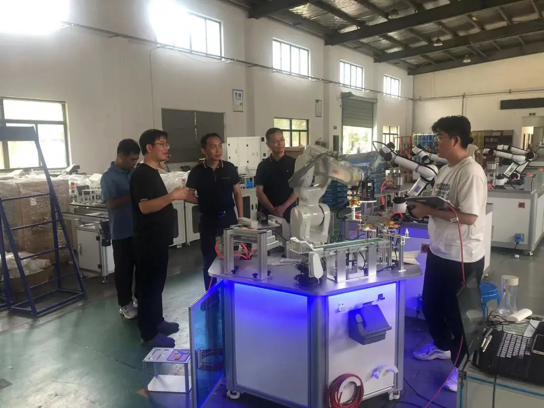 【27】2023年7月15日至16日,机器人工程专业刘庆立、张强两位老师赴苏州博达特机电科技有限公司(以下简称“博达特”)参观调研。博达特总经理浦恩帅,项目经理屈海洋等与我校就智能产线实验平台的机械结构、实验功能及校企合作等议题进行详细论证、讨论和交流。