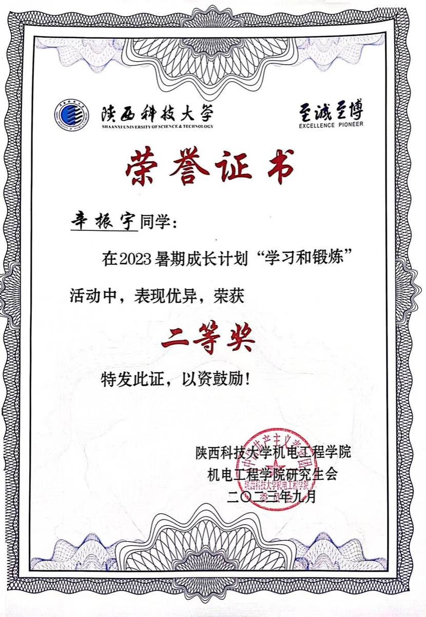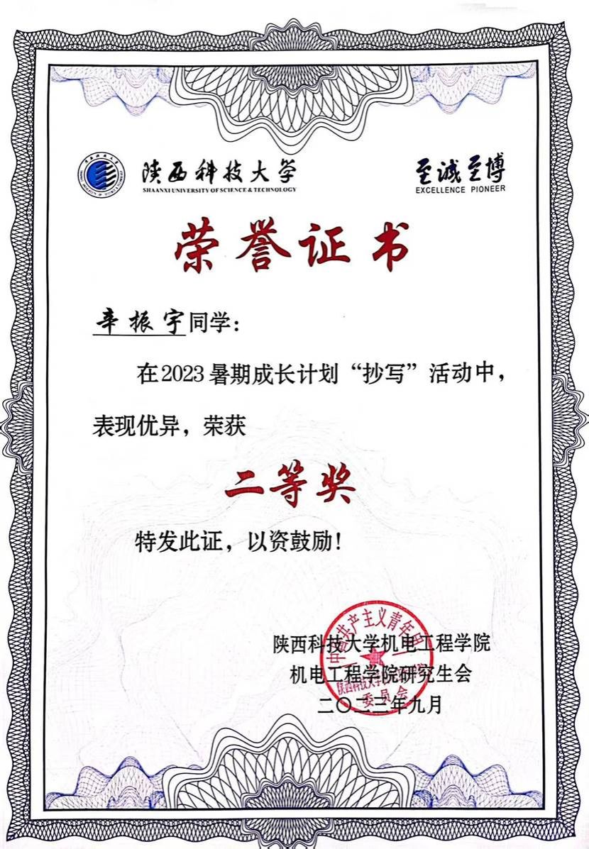 辛振宇,陕西宝鸡人,本科就读于中北大学机械设计制造及其自动化专业。现为88858cc永利官网22级一名研究生。