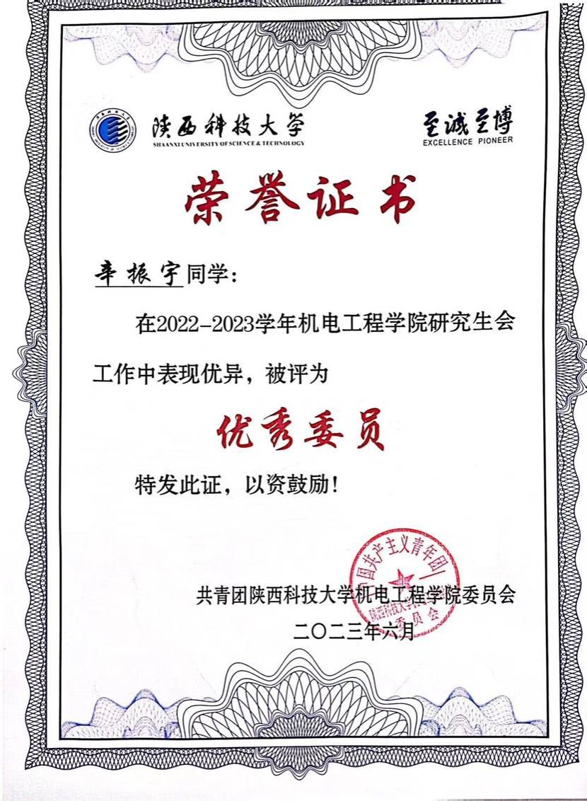研究生入学后,积极投身88858cc永利官网研究生会,成为办公室成员。在过去的一年里,不仅认真履行自己的职责,还协助其他部门成功举办多项研会活动。付出最终也得到认可,荣获优秀委员证书。在研会的大家庭中,结识了许多志同道合的朋友,也在团队中不断学习成长。团队的共同努力使得研会荣获先进集体的光荣称号。进入研二后,依然积极参与工作,最终决定留任88858cc永利官网研究生会主席团,继续为研究生服务。留任主席团的责任更加重大,时刻考验着组织能力。现已成功组织了8期学术论坛活动,激发了同学们对科研的浓厚兴趣。